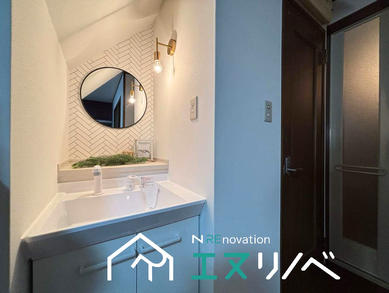 壁紙や床のリフォームに加え、洗面台とトイレの設備交換を行い、使いやすく清潔感のある空間に整えました。